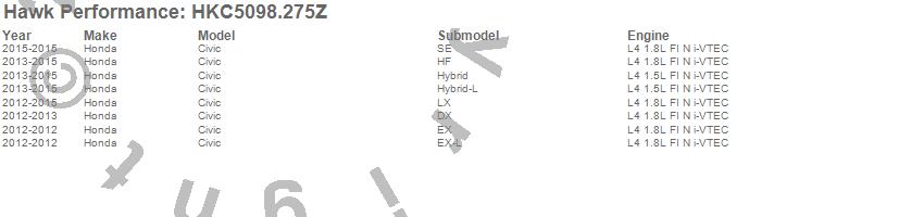 Hawk Performance #HKC5098.275Z Talon Street Rotor And Brake Pad Kit Features: