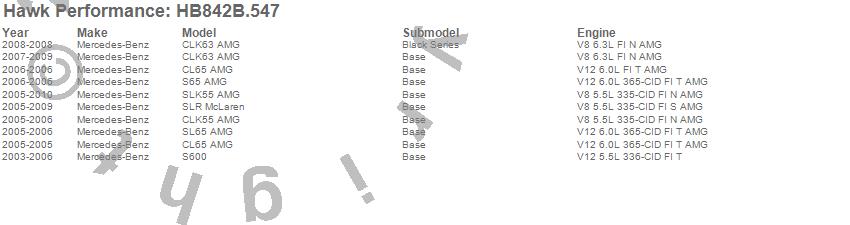 Below is an abreviated list of applications for the HPS 5.0 Disc Brake Pad.
