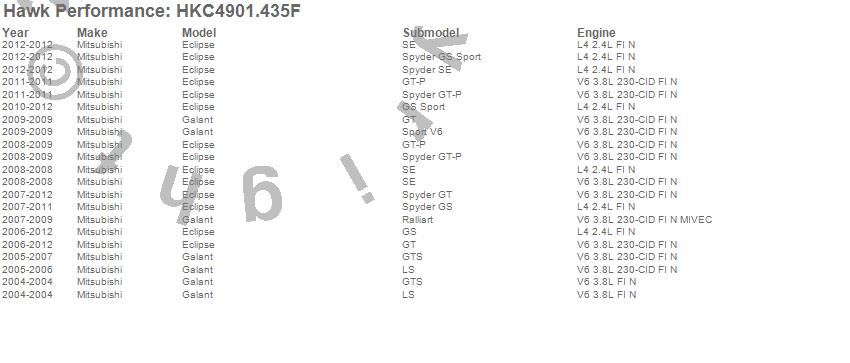 Hawk Performance #HKC4901.435F Talon Street Rotor And Brake Pad Kit Features: