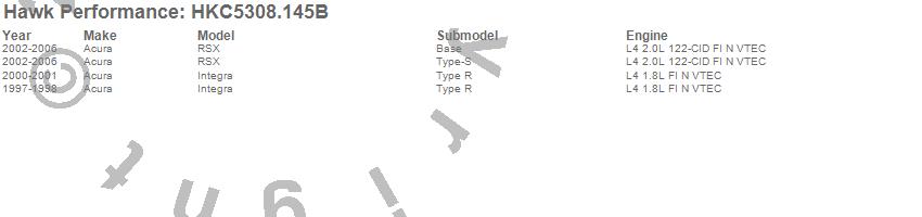 Hawk Performance #HKC5308.145B Talon Street Rotor And Brake Pad Kit Features:
