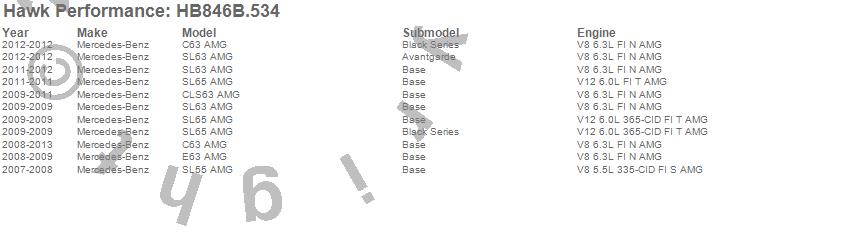 Below is an abreviated list of applications for the HPS 5.0 Disc Brake Pad.
