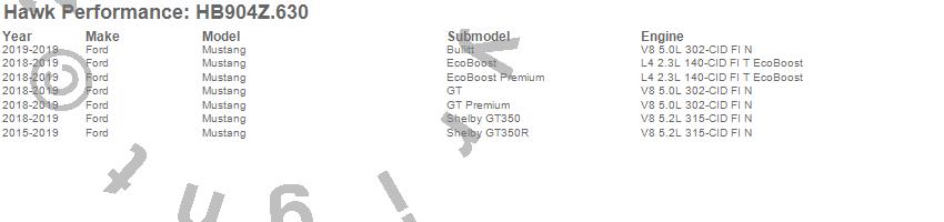 Below is an abreviated list of applications for the Performance Ceramic Disc Brake Pad.Mustang, Ford, 2019, 2018, 2017, 2016, 2015 moreā¦