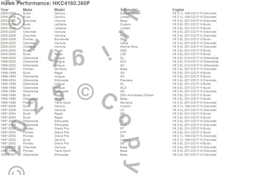 Hawk Performance #HKC4160.360F Talon Street Rotor And Brake Pad Kit Features: