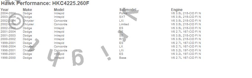Hawk Performance #HKC4225.260F Talon Street Rotor And Brake Pad Kit Features: