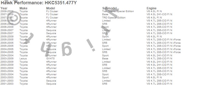 Below is an abreviated list of applications for the Talon Street Rotor And Brake Pad Kit.