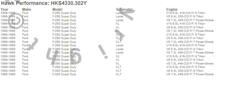 Below is an abreviated list of applications for the Talon Street Rotor And Brake Pad Kit.F-250 Super Duty, F-350 Super Duty, Ford, 1999 moreā¦