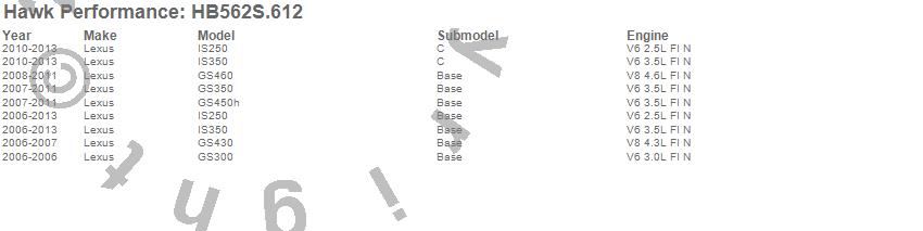 Below is an abreviated list of applications for the HT-10 Disc Brake Pad.GS300, GS350, GS430, GS450h, GS460, IS250, IS350, Lexus, 2013, 2012, 2011, 2010, 2009, 2008, 2007, 2006 moreā¦