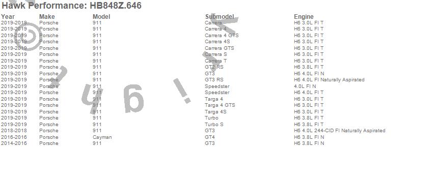 Below is an abreviated list of applications for the Performance Ceramic Disc Brake Pad.911, Cayman, Porsche, 2019, 2018, 2016, 2015, 2014 moreā¦