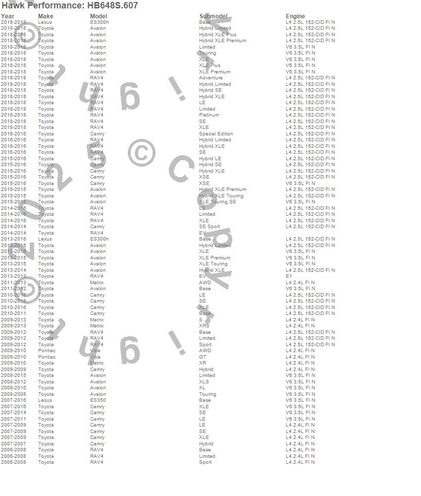 Below is an abreviated list of applications for the HT-10 Disc Brake Pad.Avalon, Camry, ES300h, ES350, Matrix, RAV4, Vibe, Lexus, Pontiac, Toyota, 2018, 2016, 2015, 2014, 2013, 2012, 2011, 2010, 2009, 2008 moreā¦