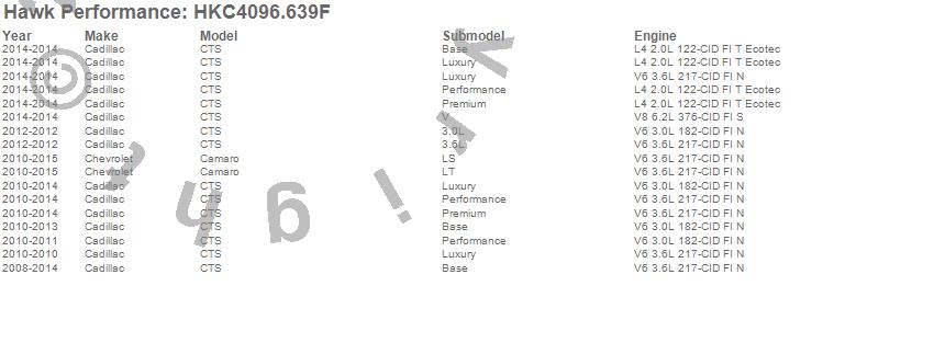 Hawk Performance #HKC4096.639F Talon Street Rotor And Brake Pad Kit Features: