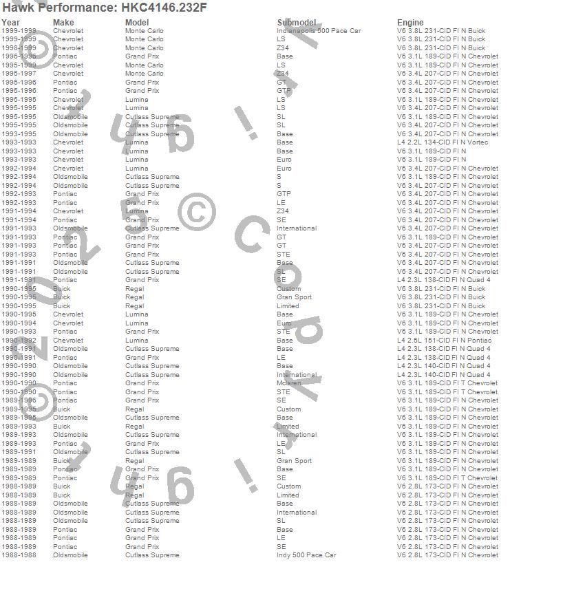 Hawk Performance #HKC4146.232F Talon Street Rotor And Brake Pad Kit Features: