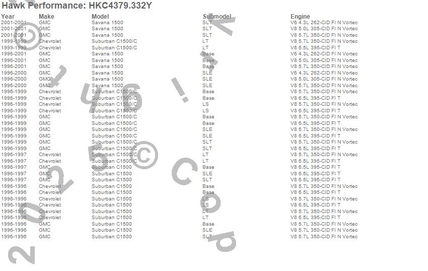Hawk Performance #HKC4379.332Y Talon Street Rotor And Brake Pad Kit Features:
