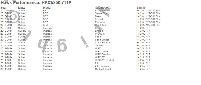 Hawk Performance #HKC5250.711F Talon Street Rotor And Brake Pad Kit Features: