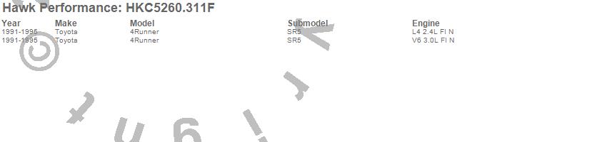 Hawk Performance #HKC5260.311F Talon Street Rotor And Brake Pad Kit Features: