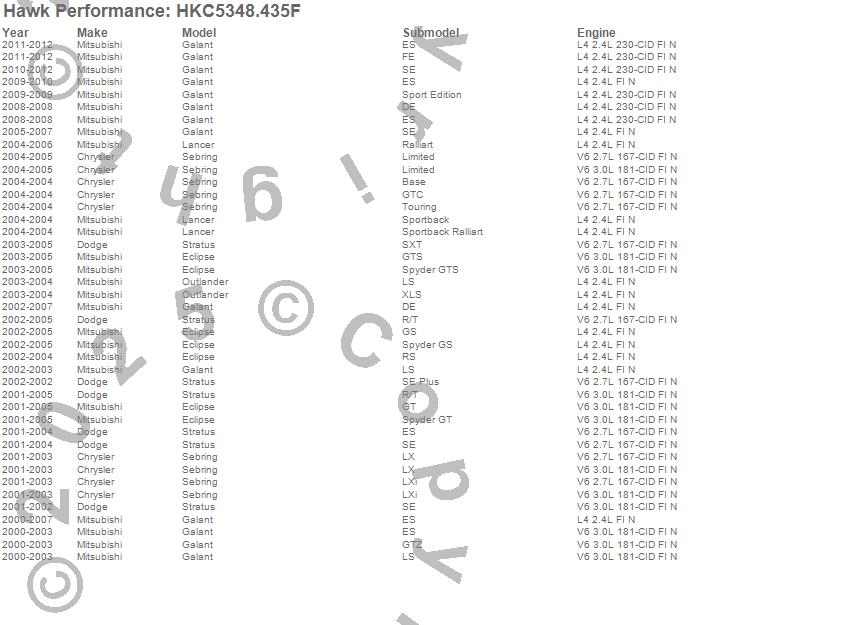 Hawk Performance #HKC5348.435F Talon Street Rotor And Brake Pad Kit Features: