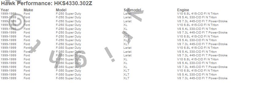 Below is an abreviated list of applications for the Talon Street Rotor And Brake Pad Kit.F-250 Super Duty, F-350 Super Duty, Ford, 1999 moreā¦