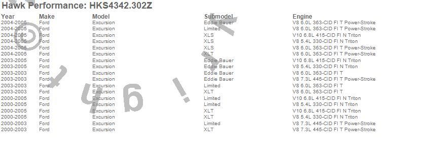 Below is an abreviated list of applications for the Talon Street Rotor And Brake Pad Kit.Excursion, Ford, 2005, 2004, 2003, 2002, 2001, 2000 moreā¦