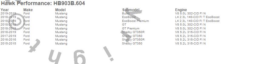 Below is an abreviated list of applications for the HPS 5.0 Disc Brake Pad.