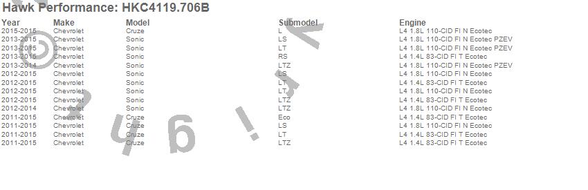 Hawk Performance #HKC4119.706B Talon Street Rotor And Brake Pad Kit Features: