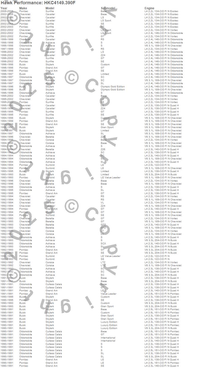 Hawk Performance #HKC4149.390F Talon Street Rotor And Brake Pad Kit Features: