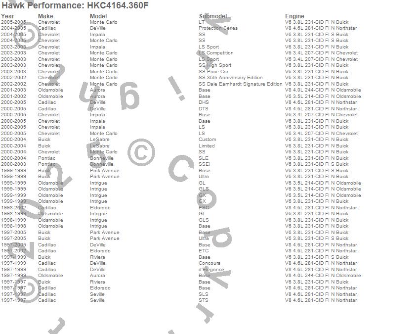 Aurora, Bonneville, DeVille, Eldorado, Impala, Intrigue, LeSabre, Monte Carlo, Park Avenue, Riviera, Seville, Buick, Cadillac, Chevrolet, Oldsmobile, Pontiac, 2005, 2004, 2003, 2002 moreā¦