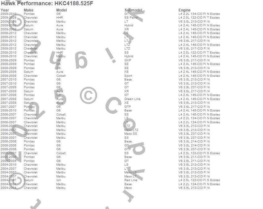 Hawk Performance #HKC4188.525F Talon Street Rotor And Brake Pad Kit Features: