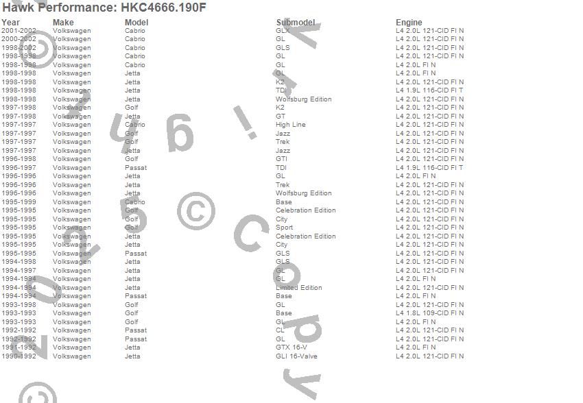 Hawk Performance #HKC4666.190F Talon Street Rotor And Brake Pad Kit Features: