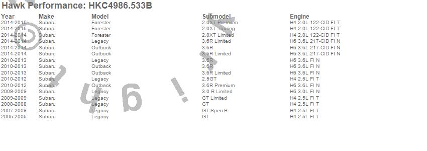 Hawk Performance #HKC4986.533B Talon Street Rotor And Brake Pad Kit Features: