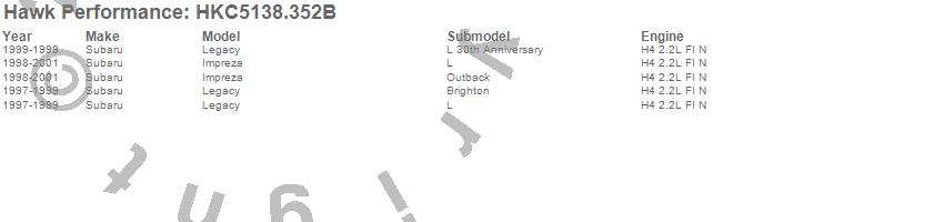 Hawk Performance #HKC5138.352B Talon Street Rotor And Brake Pad Kit Features: