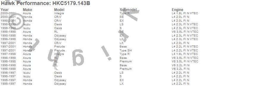 Hawk Performance #HKC5179.143B Talon Street Rotor And Brake Pad Kit Features: