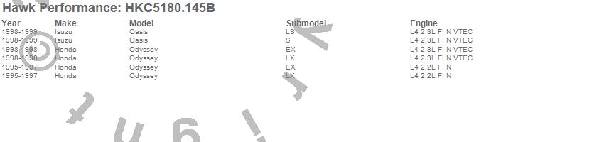 Hawk Performance #HKC5180.145B Talon Street Rotor And Brake Pad Kit Features: