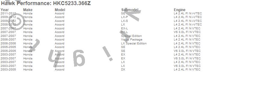 Hawk Performance #HKC5233.366Z Talon Street Rotor And Brake Pad Kit Features: