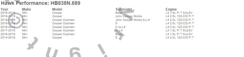Below is an abreviated list of applications for the HP Plus Disc Brake Pad.