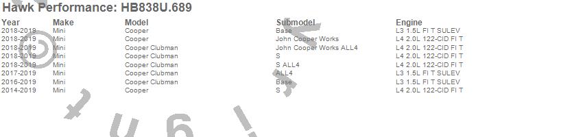 Hawk Performance #HB838U.689 DTC-70 Disc Brake Pad Features: