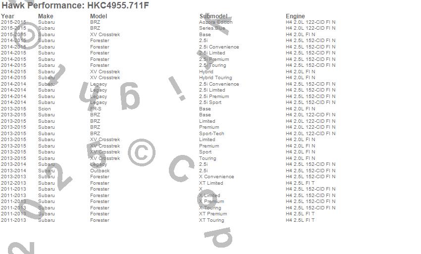 Hawk Performance #HKC4955.711F Talon Street Rotor And Brake Pad Kit Features: