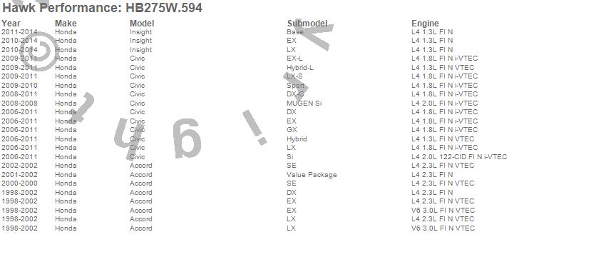 Below is an abreviated list of applications for the DTC-30 Disc Brake Pad.Accord, Civic, Insight, Honda, 2014, 2013, 2012, 2011, 2010, 2009, 2008, 2007, 2006, 2002, 2001, 2000, 1999, 1998 moreā¦