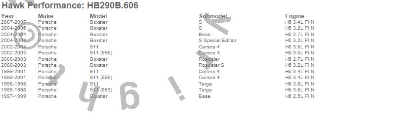 Below is an abreviated list of applications for the HPS 5.0 Disc Brake Pad.