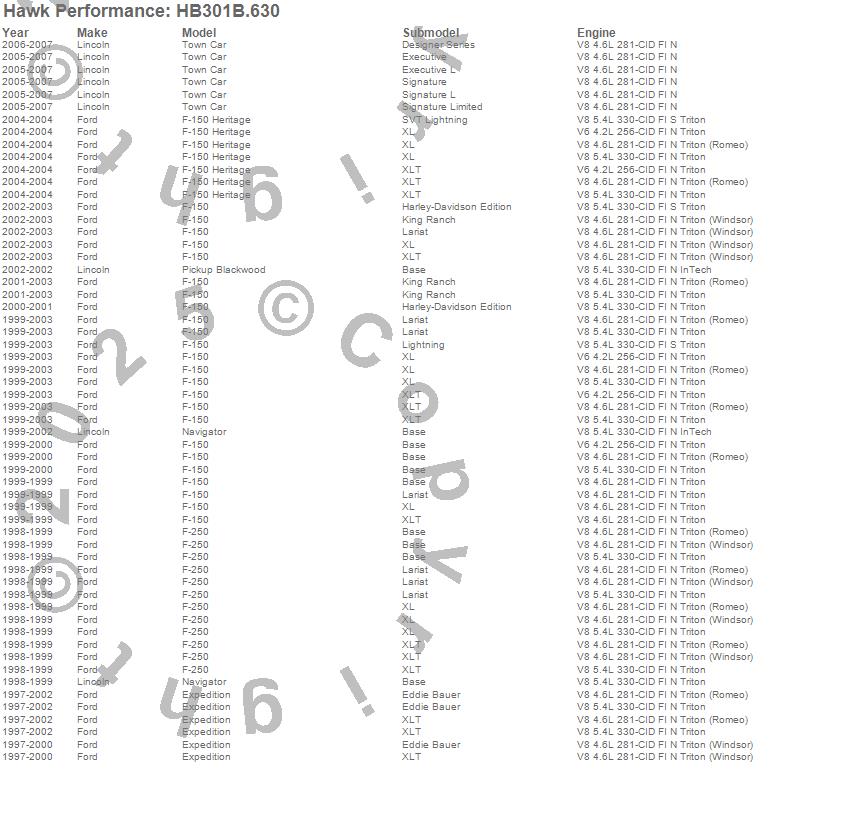 Below is an abreviated list of applications for the HPS 5.0 Disc Brake Pad.
