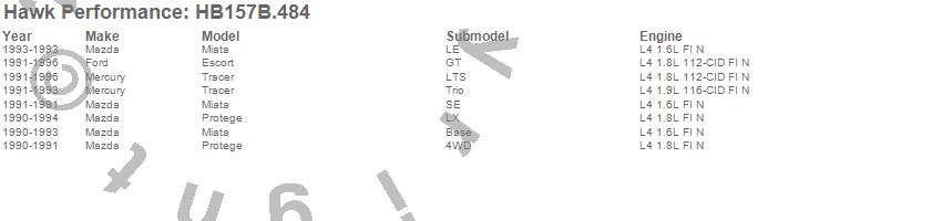 Below is an abreviated list of applications for the HPS 5.0 Disc Brake Pad.