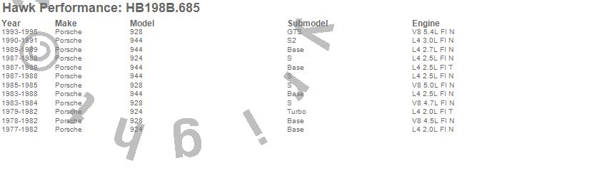 Below is an abreviated list of applications for the HPS 5.0 Disc Brake Pad.