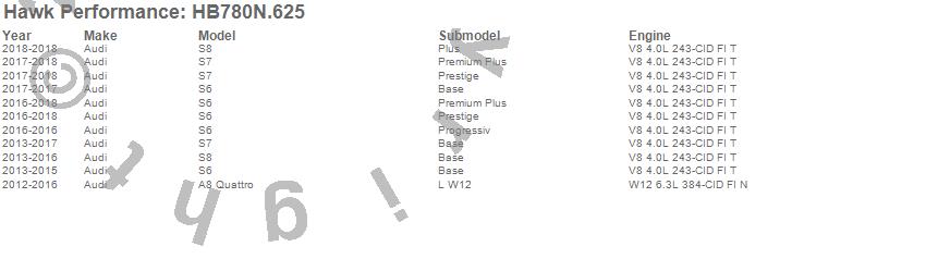 Below is an abreviated list of applications for the HP Plus Disc Brake Pad.