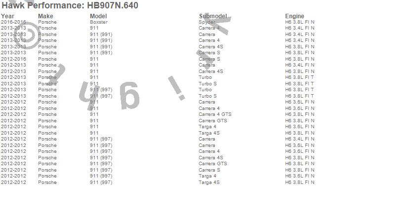 Below is an abreviated list of applications for the HP Plus Disc Brake Pad.