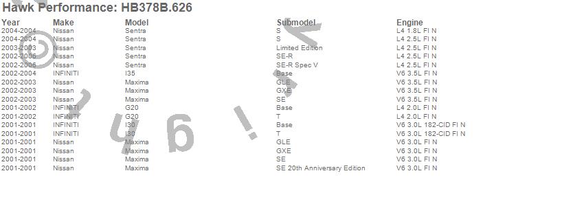 Below is an abreviated list of applications for the HPS 5.0 Disc Brake Pad.