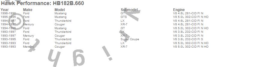 Below is an abreviated list of applications for the HPS 5.0 Disc Brake Pad.