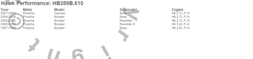 Below is an abreviated list of applications for the HPS 5.0 Disc Brake Pad.