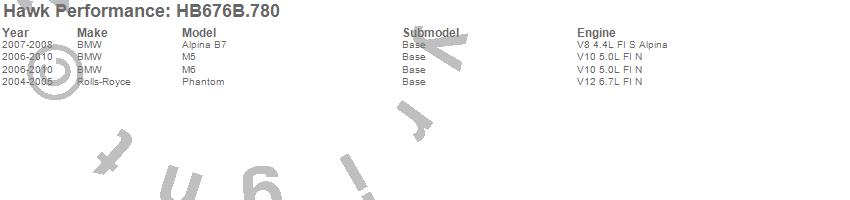 Below is an abreviated list of applications for the HPS 5.0 Disc Brake Pad.