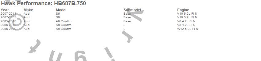 Below is an abreviated list of applications for the HPS 5.0 Disc Brake Pad.