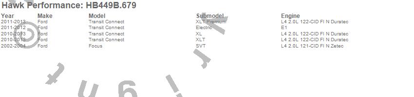 Below is an abreviated list of applications for the HPS 5.0 Disc Brake Pad.