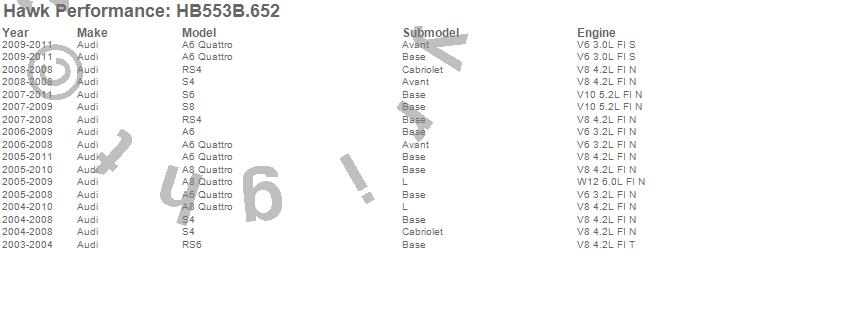 Below is an abreviated list of applications for the HPS 5.0 Disc Brake Pad.