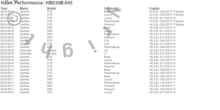 Below is an abreviated list of applications for the HPS 5.0 Disc Brake Pad.